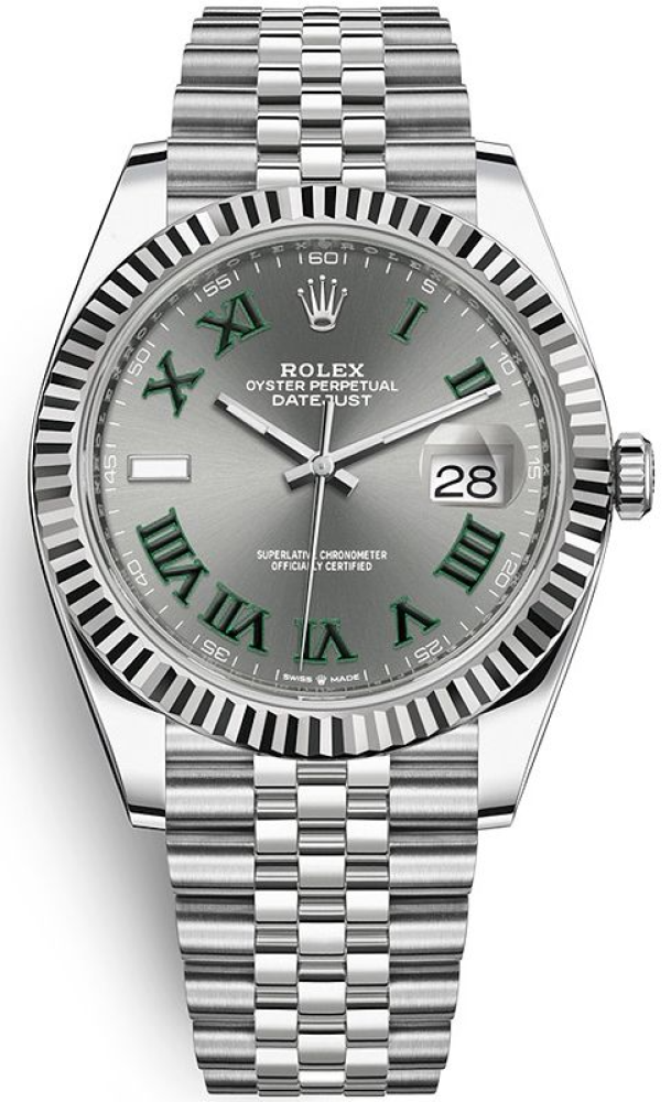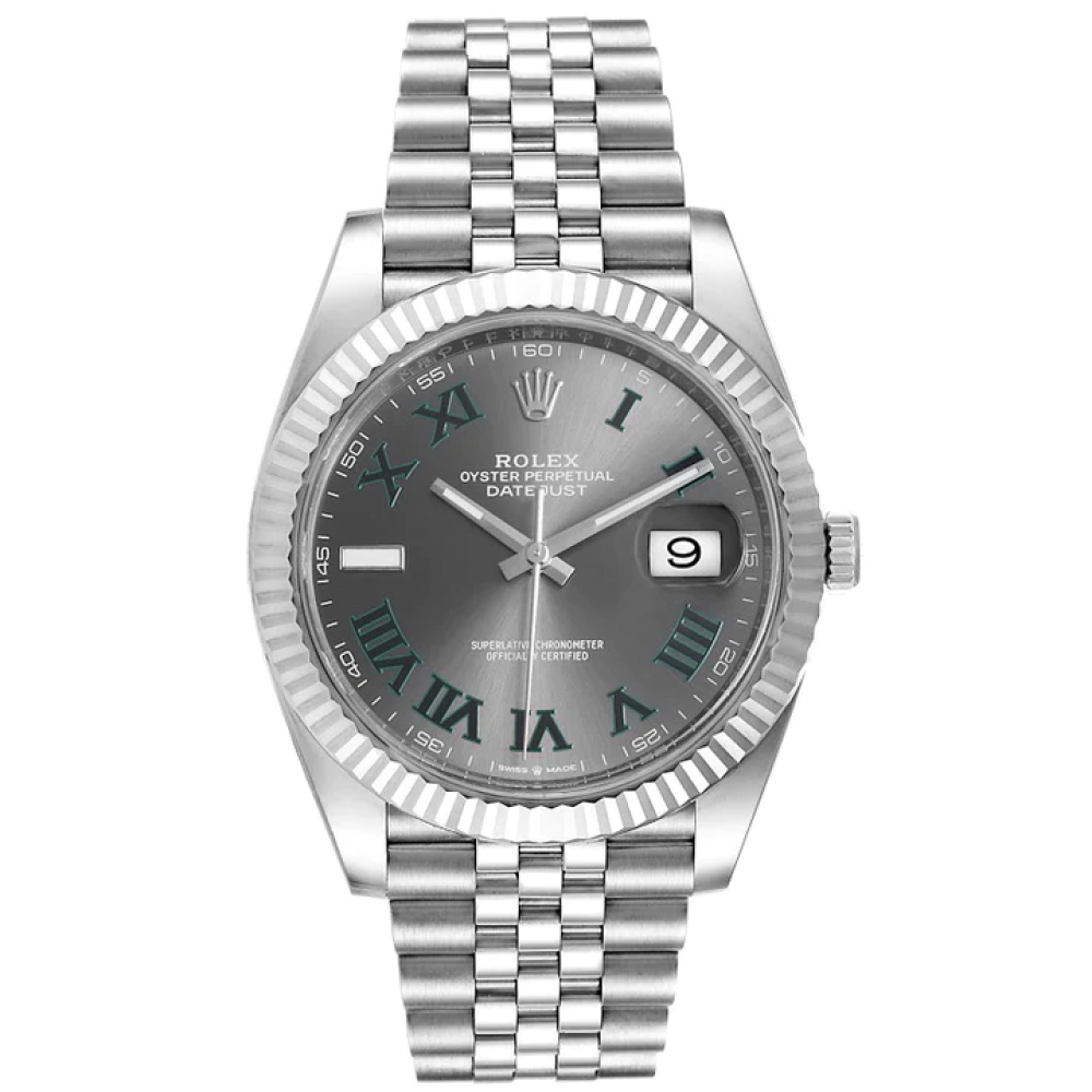ساعة رولكس ديت جست ٤١ من الذهب الأبيض/الفولاذ، مينا رومانية رمادية، إطار مزخرف، سوار جوبيلي ١٢٦٣٣٤ - RLX
