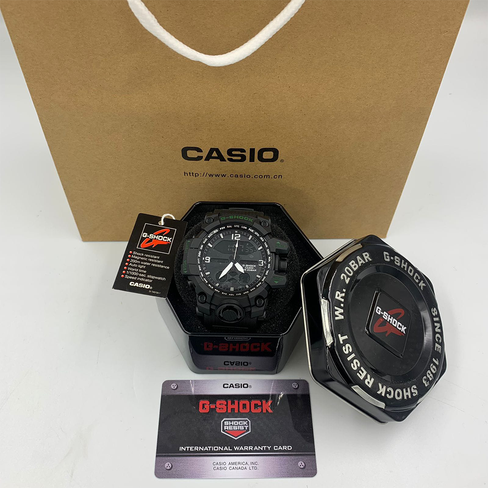 تصميم عملي باللون الأسود مع لمسات خضراء عسكرية، شاشة رقمية واضحة، مقاومة للماء والصدمات، مثالية للاستخدام اليومي والرياضي. مرفقة بعلبة معدنية فاخرة وكرت ضمان أصلي.